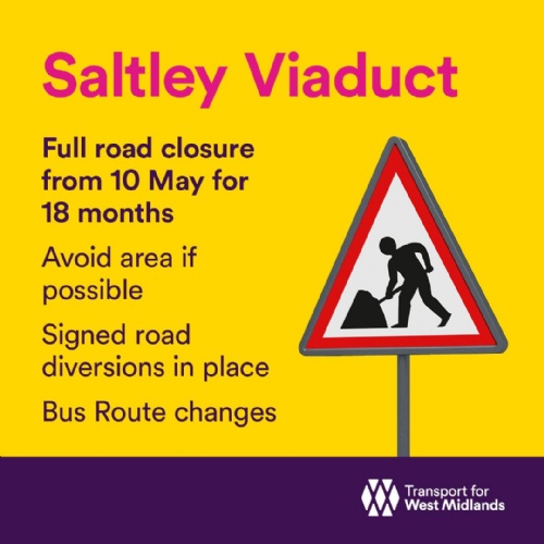 Saltley Viaduct will close from Sunday 10th May 2026 for approximately 18 months while a new, taller and stronger bridge is built over the railway, the new HS2 line, the canal and the River Rea.